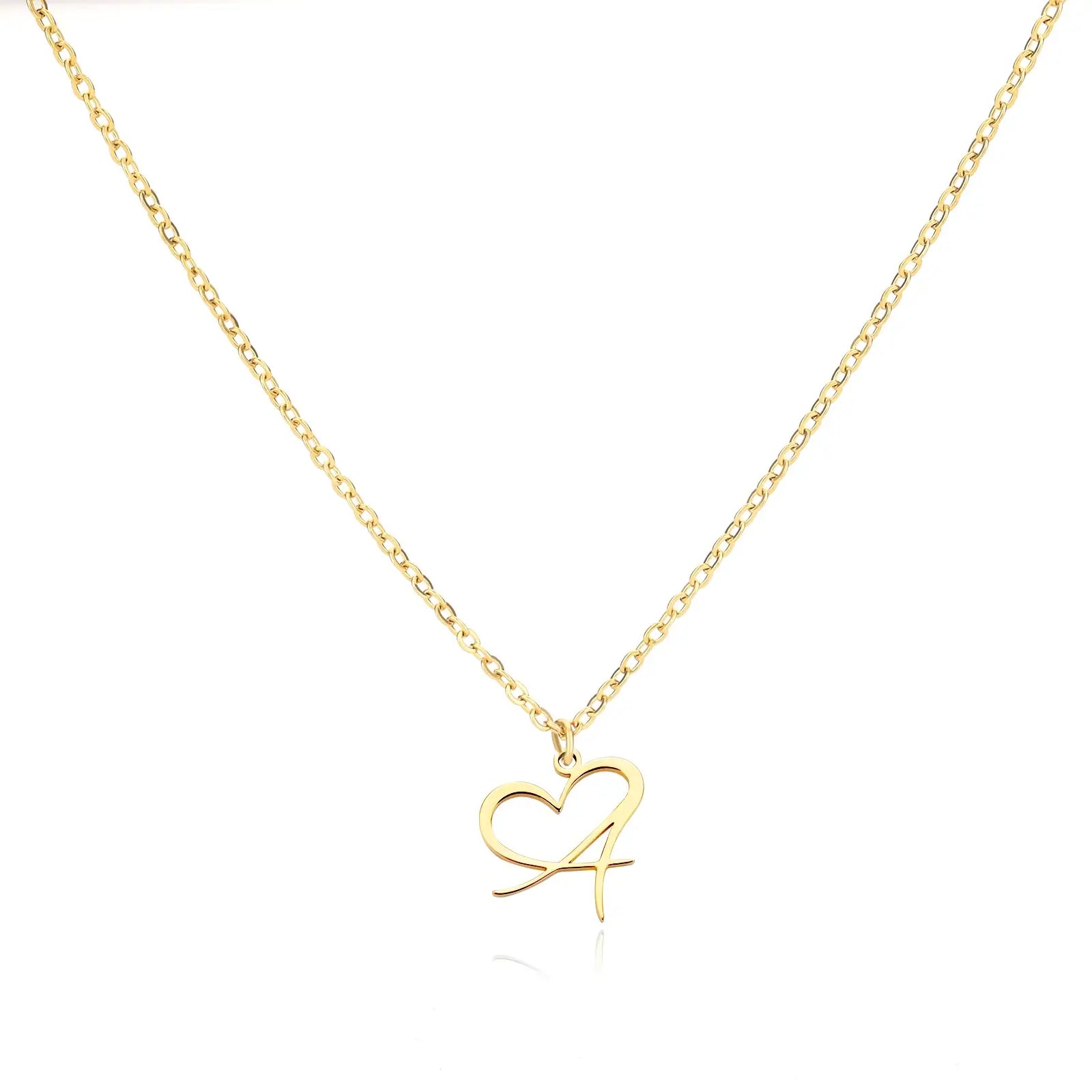 Personalized Name Necklace in Cursive with Heart Pendant